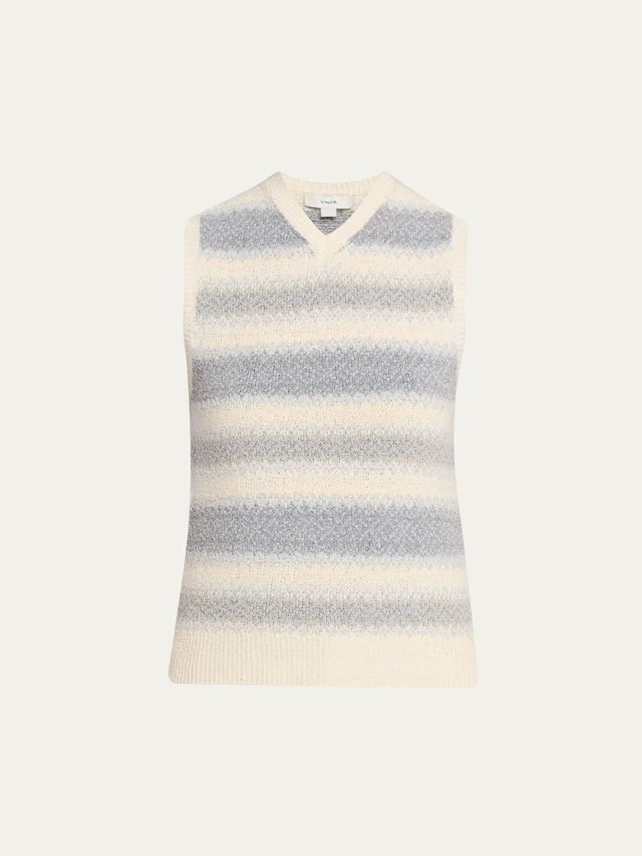 Vince striped sweater vest crafted from ultrasoft knit V neckline Sleeveless Classic fit Hem sits at the hip Pullover style Polyester/nylon/polyamide/spandex Hand wash Imported SIZE amp; FITModel measurements: 5'10" tall Model is wearing a US size 4/Small