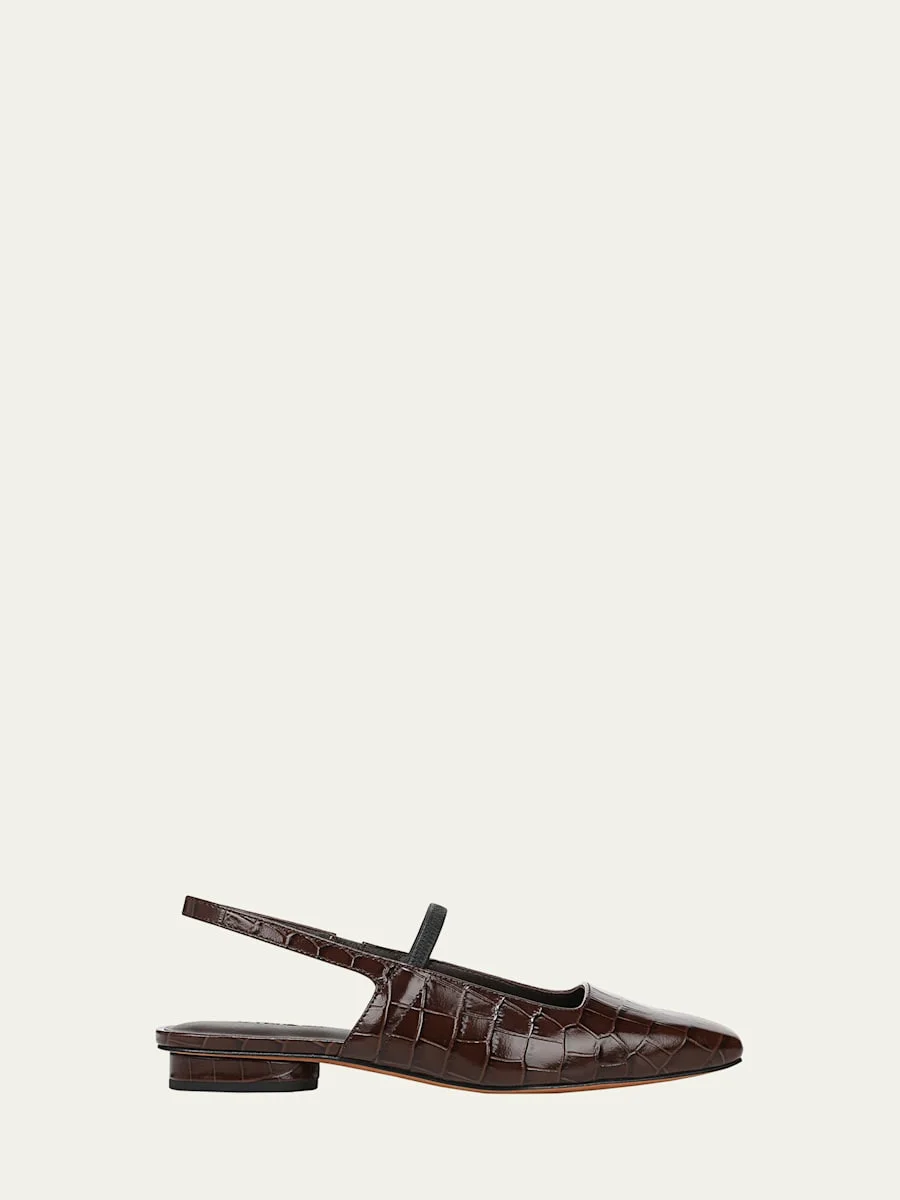 Vince "Venice" flats in textural croc-embossed leather 0.50 in / 15 mm flat heel Square toe Elastic mid-vamp band Stretch slingback strap Leather outsole Lining: Leather Spot clean Imported Shipping Direct from Vendor, usually ships within 7 business days. Online Inquiries: BGS21_X6YEV| Store Inquiries: #5055824