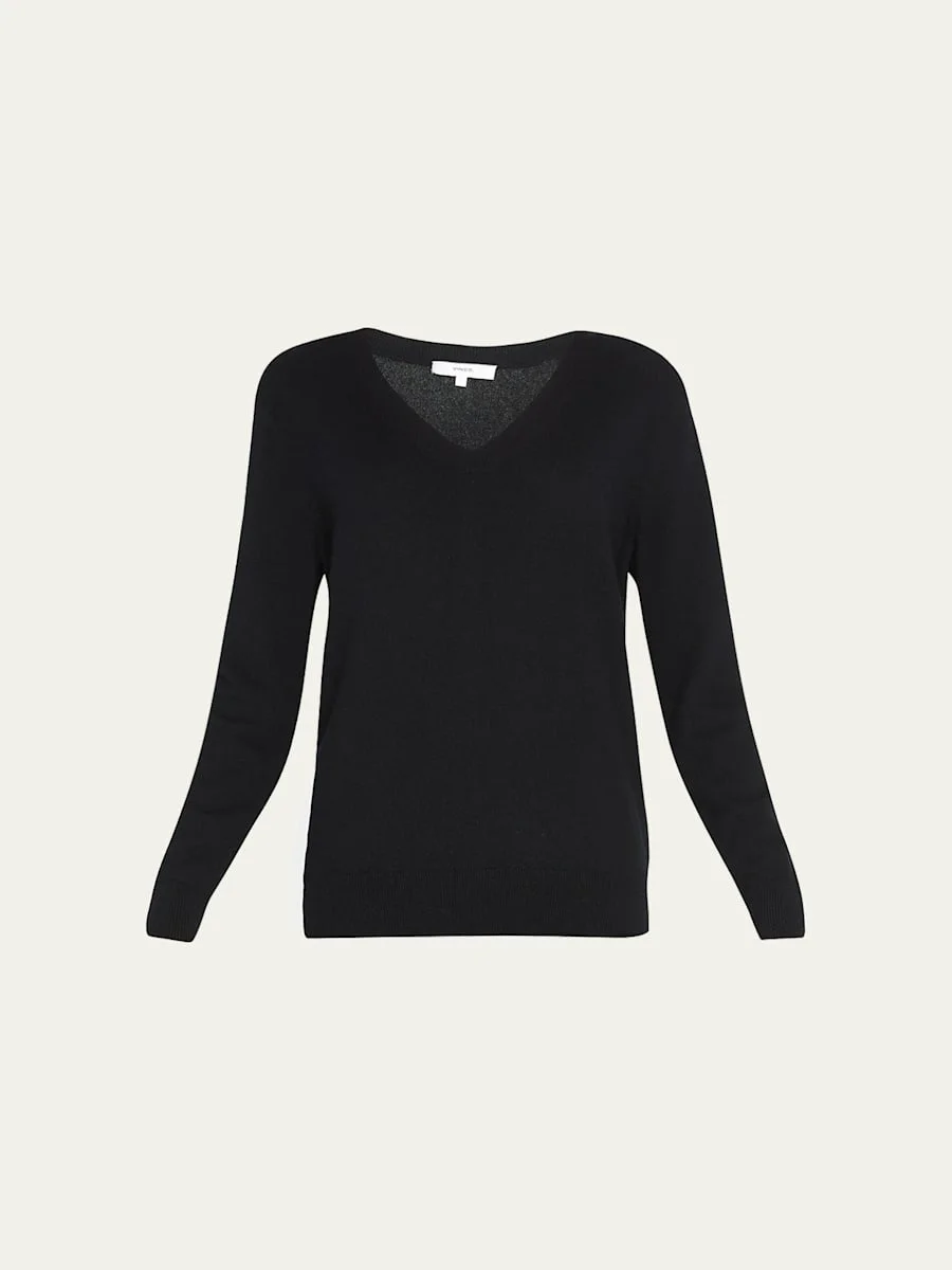EXCLUSIVELY AT NEIMAN MARCUS (Heather Steel only) Vince cashmere sweater. Approx. 25"L down center back. V neckline. Long sleeves. Relaxed fit. Pullover style. Hand wash. Imported. Online Inquiries: BGS21_TXS7D| Store Inquiries: #2800401