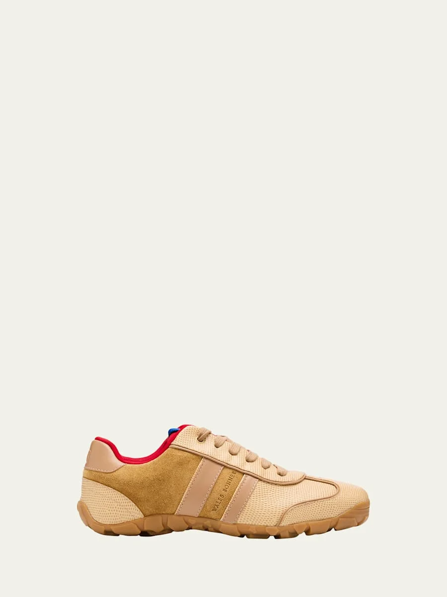 Wales Bonner lowtop suede and lizardembossed leather sneakers with contrast smooth leather side stripes and back collar 0.75 in / 20 mm flat heel Round toe Laceup vamp Molded rubber outsole Lining: Leather Made in Italy