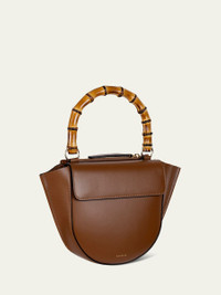 Crafted of smooth leather, this Wandler "Hortensia" tophandle bag is structured in a curved silhouette with contrastpainted edges and bright goldtone hardware Bamboo top handle Flap top with magnetic closures Exterior, back zip pocket Interior, one slip pocket Lining: Nylon/polyurethane Approx. 6.9"H x 10.6"W x 2.4"D Made in Italy
