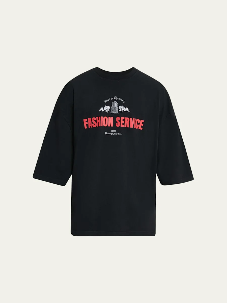 The Willy Chavarria Tshirt in softened jersey showcases a bold "Casa de Chavarria" screen print, delivering a clean yet impactful statement. Crew neckline Short sleeves Dropped shoulder Pullover style Oversized fit Cotton Made in USA from imported materials
