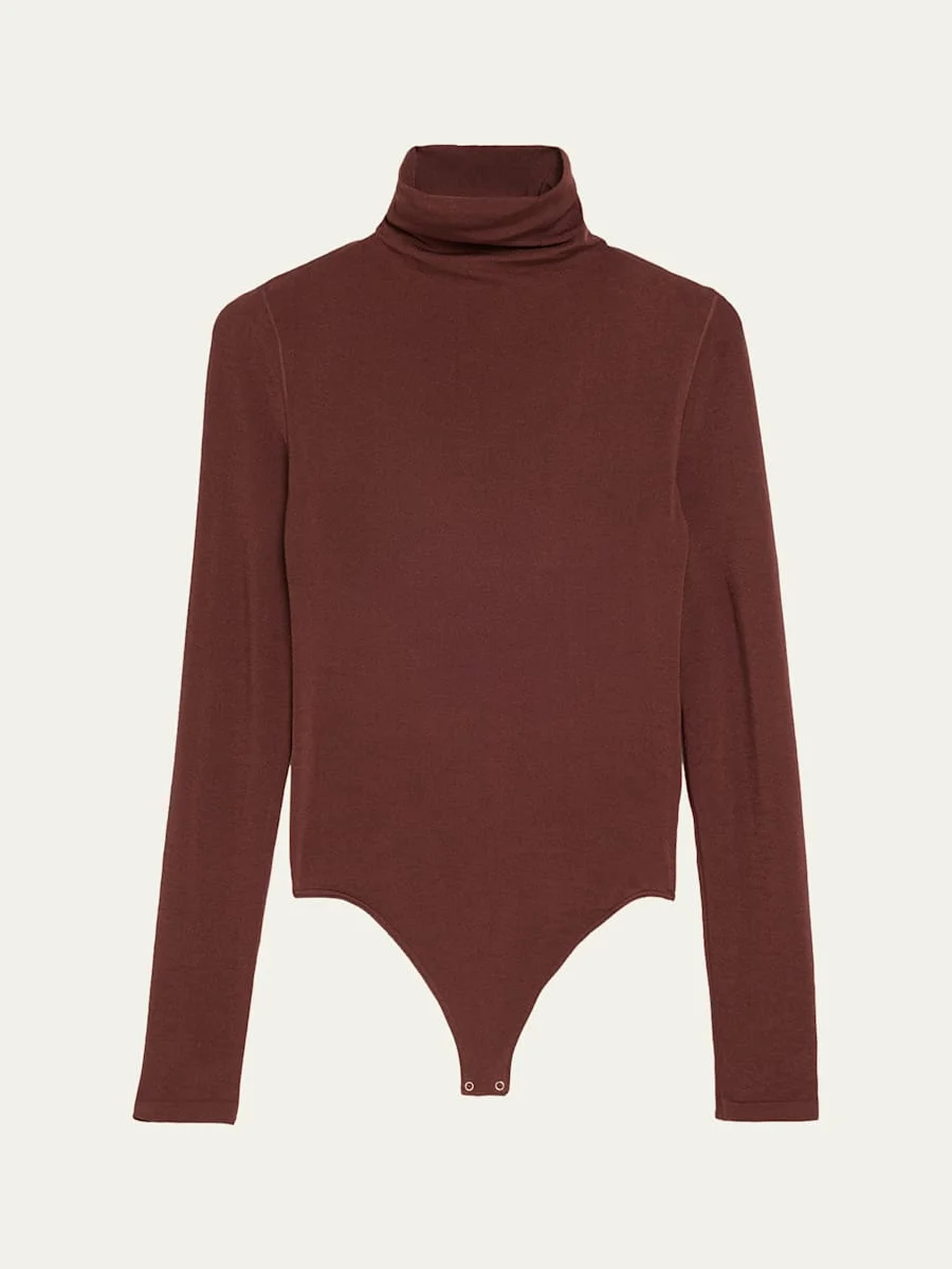 Wolford "Colorado" circular-knit string bodysuit in an opaque, shiny-finished cotton blend Turtleneck Long sleeves Minimal seat coverage Formfitting Snap gusset closure Cotton/elastane Made in the Czech Republic Model is 5'10"/177cm. Online Inquiries: BGS21_I2LJV| Store Inquiries: #4855815