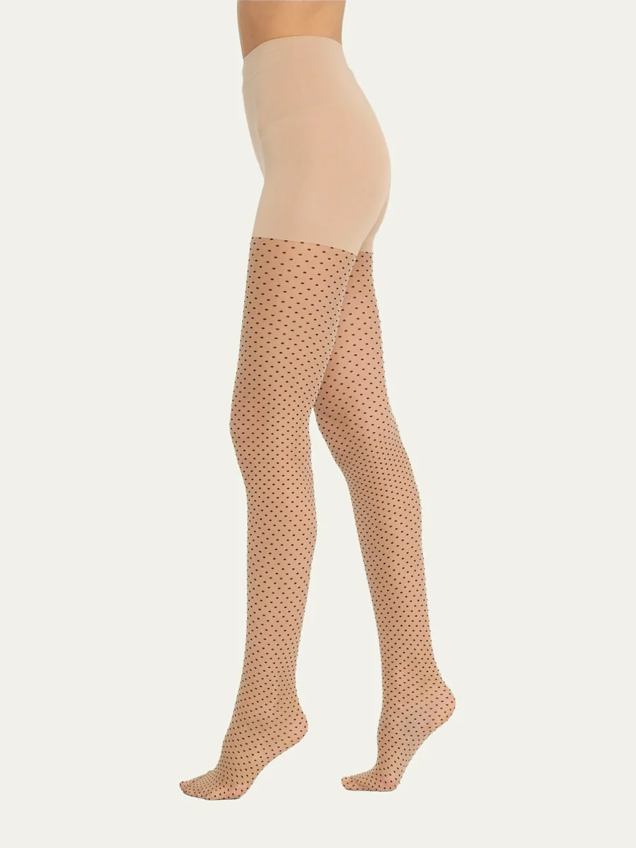 Wolford sheer tights with dotted fishnet intarsia and opaque control top Dyeing meets the bluesign® standard for chemical, water, and energy usage Soft knittedin wide waistband 20 denier Nylon/polyamide/elastane/polyester Made in Austria