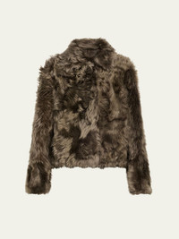 Yves Salomon short jacket in soft dyed lamb shearling (Spain) Point collar Long sleeves; approx. 24.5"L Side slip pockets Classic fit Hem sits at the hip Button-front Shearling Unlined Made in France Model is 5'10"/177cm. Online Inquiries: BGS21_T8W29| Store Inquiries: #4862427