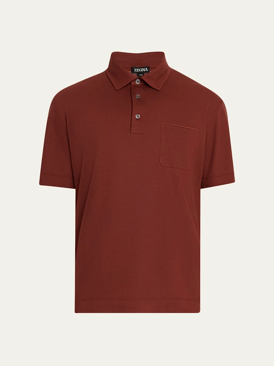 Men's Cotton Polo Shirt with Leather-Trim Pocket