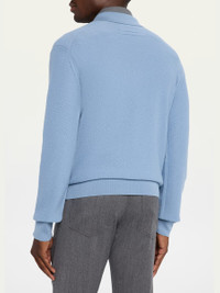 ZEGNA solid textured sweater in Oasi Cashmere crafted with 100% certified traceable fibers Johnny collar Long sleeves Ribbed cuffs and hem Pullover style Cashmere Unlined Dry clean, hand wash Made in Italy