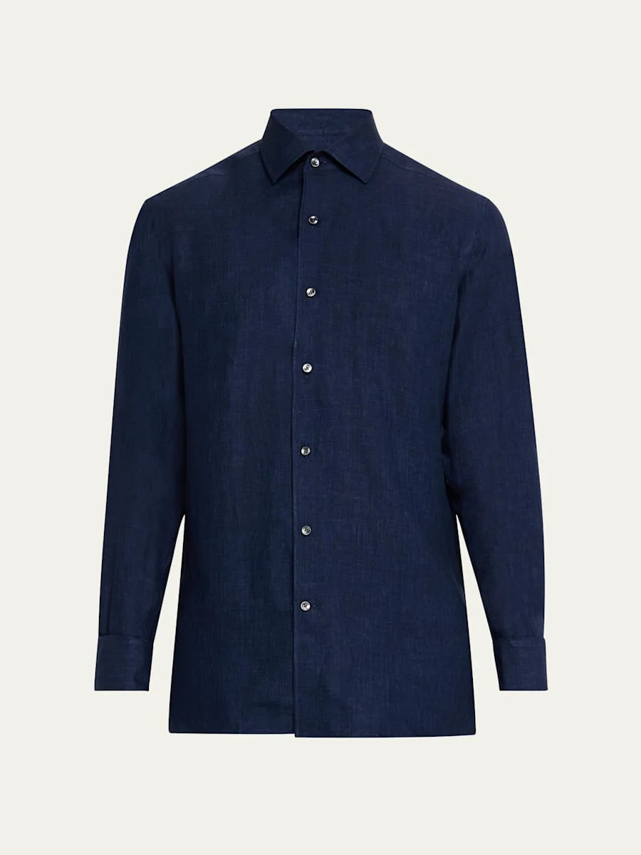ZEGNA casual buttondown shirt in solid Oasi Lino Oasi Lino linen is crafted exclusively from Europeangrown flax fibers Point collar Button placket Long sleeves Round barrel cuffs Shirttail hem Linen Dry clean Made in Italy