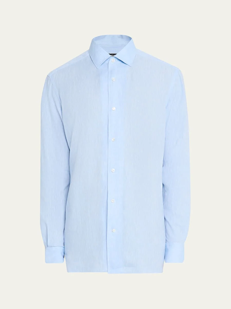 ZEGNA solid casual button-down shirt in Oasi Lino linen Oasi Lino linen is crafted exclusively from European-grown flax fibers Point collar Button placket Long sleeves Round barrel cuffs Back yoke Shirttail hem Linen Made in Italy Proposition 65 warning for California residents Online Inquiries: BGS21_NCPKA| Store Inquiries: #4924469