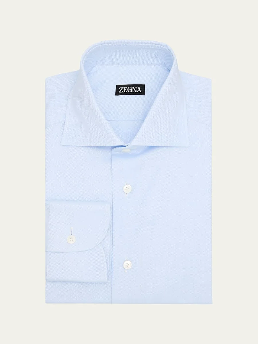 ZEGNA dress shirt crafted in a textural Oxford weave, complete with motherofpearl buttons for a luxurious finish Spread collar; button placket Long sleeves Round barrel cuffs Yoked back shoulders Shirttail hem Cotton Unlined Machine wash, line dry Imported