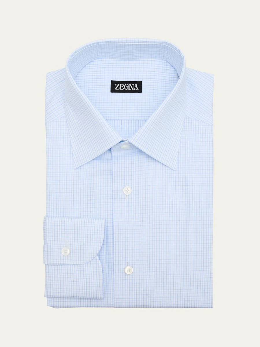 ZEGNA dress shirt in crisp cotton displaying a mini graph check print Point collar Button placket Long sleeves Round barrel cuffs Cotton Dry clean Imported Online Inquiries: BGS21_NDNT3| Store Inquiries: #5056047
