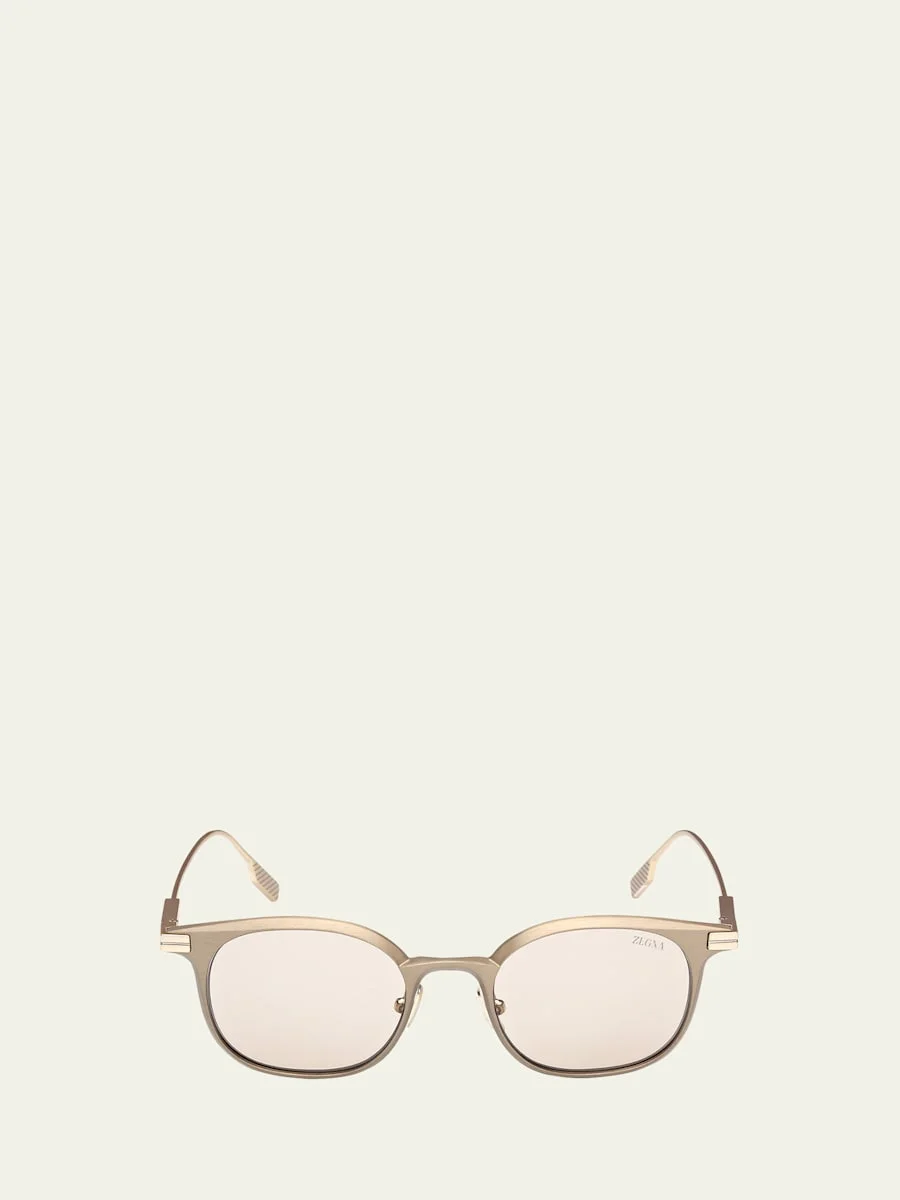 ZEGNA sunglasses in metal Eye/bridge/temple (in mm): 5020145 Eyewear style: Round Solidcolor lenses Adjustable nose pads Aluminum Spot clean 100% UVA/UVB protection Made in Italy