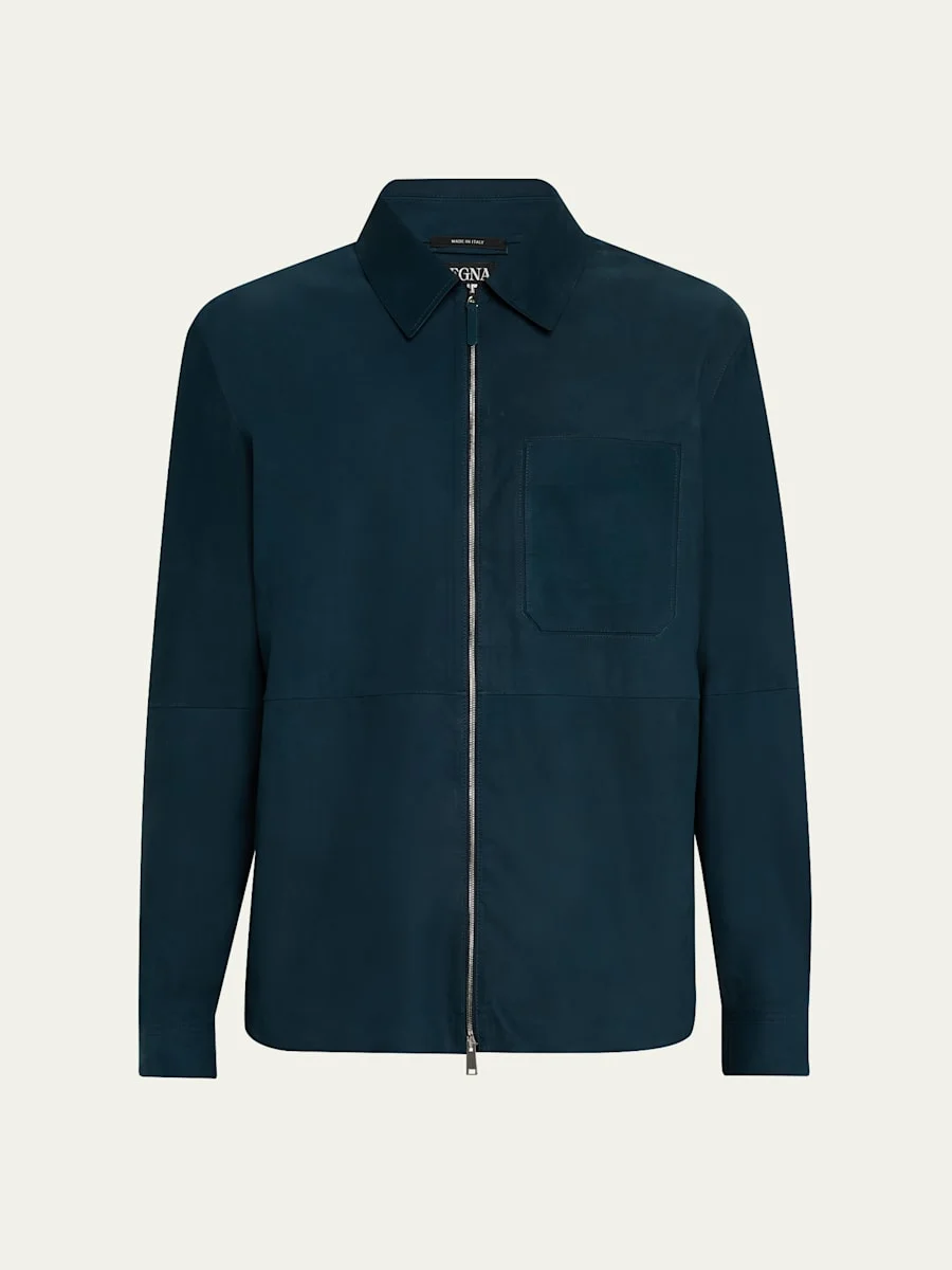 Men's SECONDSKIN Leather Full-Zip Overshirt