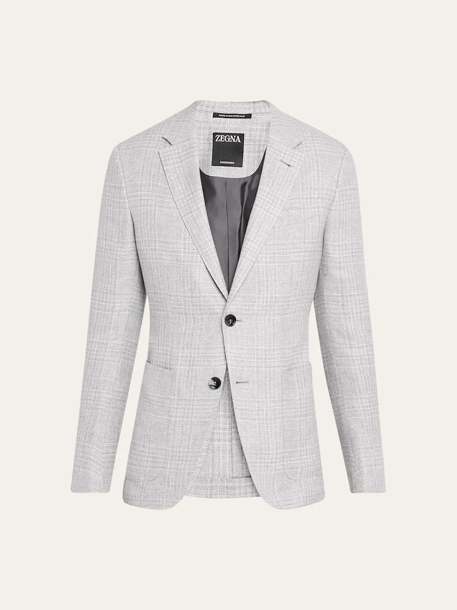 ZEGNA plaid sport jacket in a linen blend for a lightweight, textured finish Notched lapels Singlebreasted front Barchetta chest pocket Hip patch pockets Long sleeves Linen/wool/silk Dry clean Made in Italy