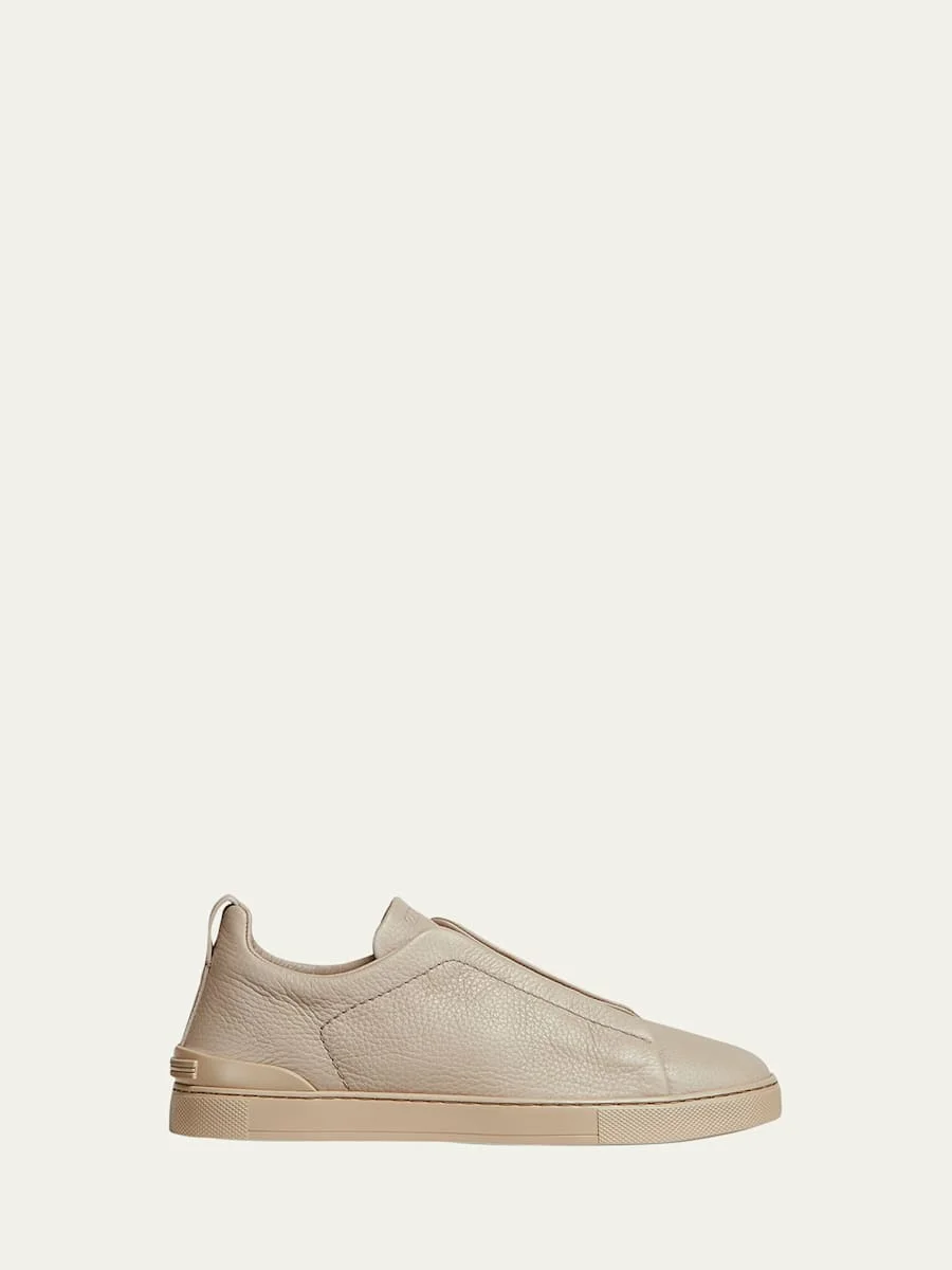 ZEGNA low-top sneakers in deerskin leather feature the iconic triple-crossed elastic vamp for an easy slip-on style Lightweight and flexible, this refined design is a luxurious take on casual footwear for fast-paced lifestyles Tone-on-tone design for a minimalist look Flat heel Round toe Embossed logo at tongue Leather lining Pull tab at backstay Rubber outsole Wipe with soft cloth Made in Italy Online Inquiries: BGS21_NAN95| Store Inquiries: #4488471