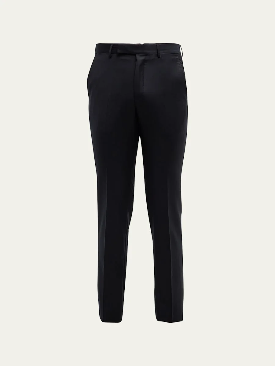 ZEGNA trousers in soft, resilient Trofeo® fabric Regular rise Flat front Side slip pockets Back welt pockets Cropped at the ankle Slim fit through straight legs Merino wool Imported Model is 6'1"/185cm. Online Inquiries: BGS21_N9ZSG| Store Inquiries: #4398735