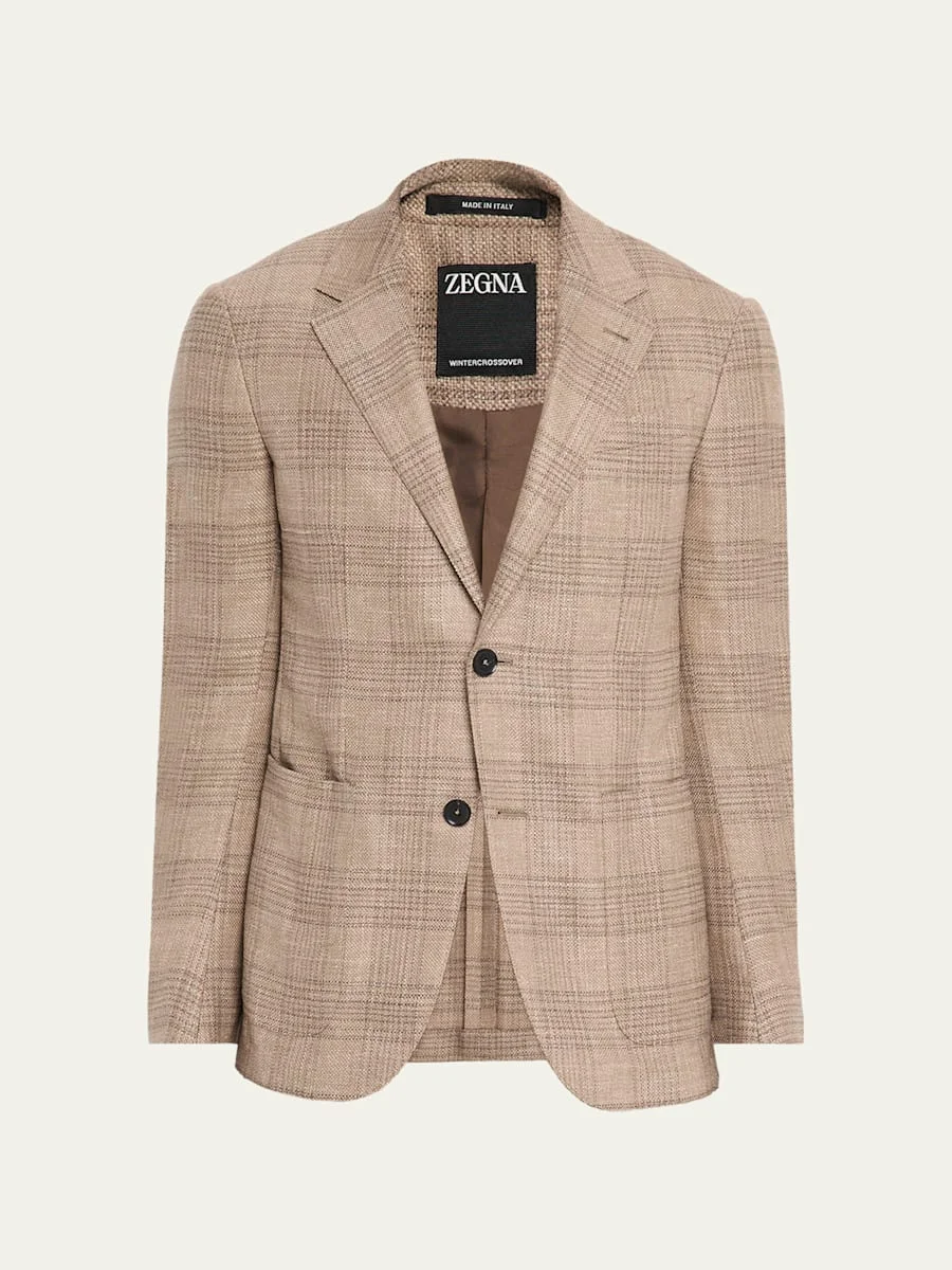 ZEGNA tonal plaid sport jacket characterized by a luxurious blend of natural materials to transition easily across seasons Notched lapels Singlebreasted front Barchetta chest pocket Hip patch pockets Internal breast pocket Doublevented back Wool/silk/linen Unlined Dry clean Made in Switzerland