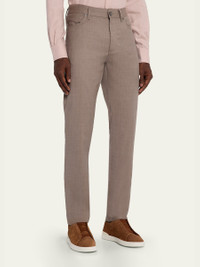 ZEGNA pants in wool sharkskin resulting in a dimensional crosshatch finish Regular rise Flat front Fivepocket style Leather label Slim fit through straight legs Full length Buttonzip front; belt loops Wool Lining: Cotton/elastane/polyester Dry clean Made in Romania