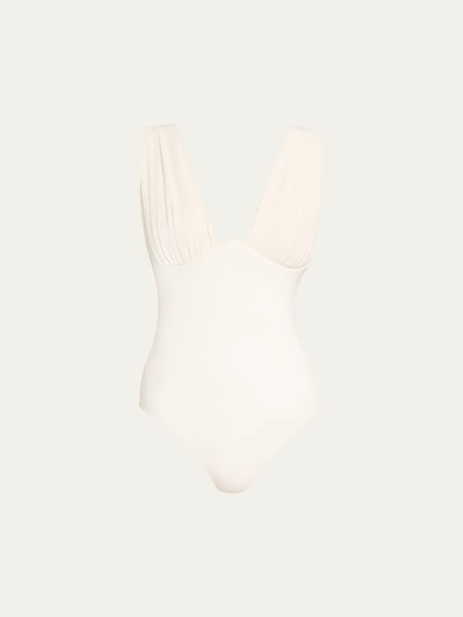 Zimmermann's "Awaken" sleek onepiece swimsuit is accented with gathered cups and shoulder straps V neckline balances figure Moderate seat coverage Nylon/polyamide/elastane Imported