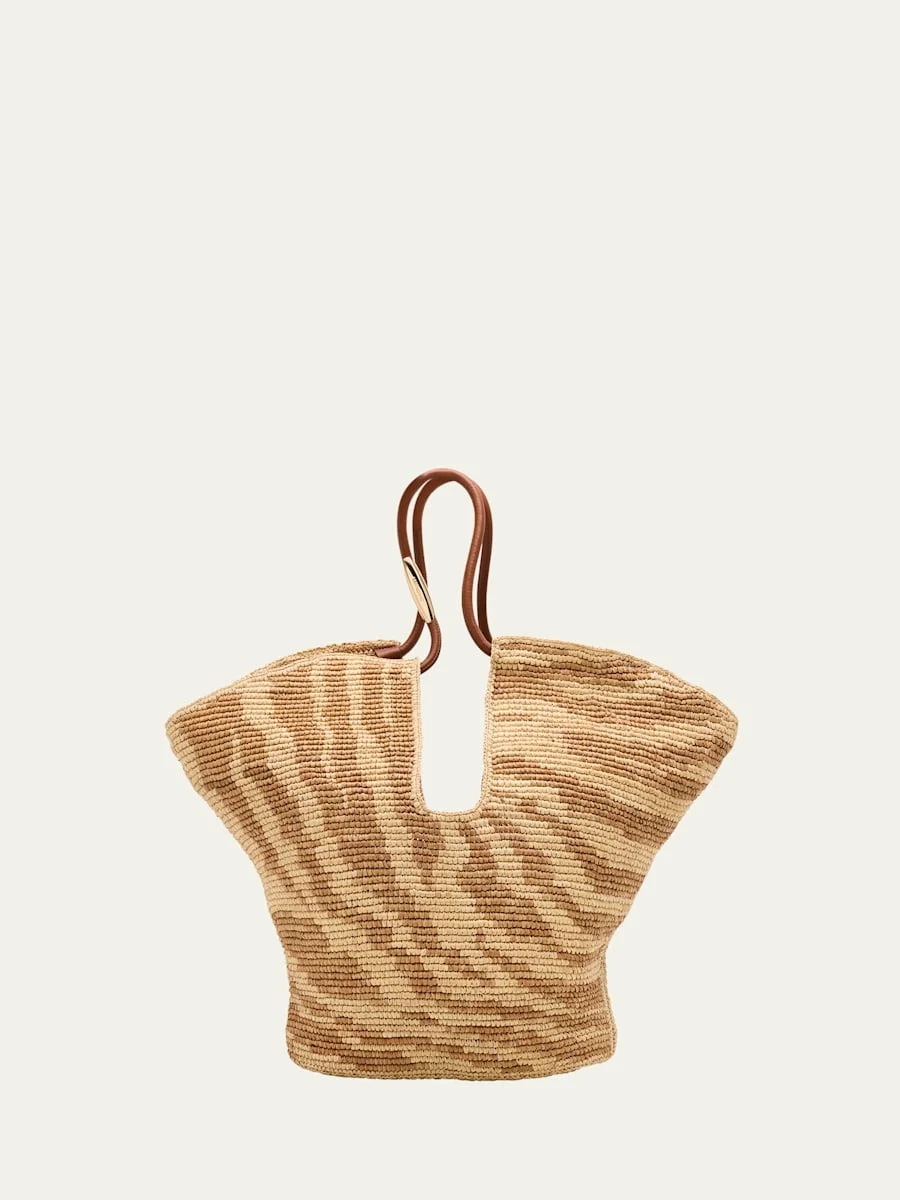 Zimmermann "Goldentime" tote bag in soft handwoven raffia with a unique zebra pattern and calf leather straps Adorned with golden surfboard-inspired logo hardware Tubular top handles, 30.3" drop Open top One main compartment Approx. 17.1"H x 25.2"W x 12.6"D Imported Size conversion: 0 = X-Small, 1 = Small, 2 = Medium, 3 = Large Online Inquiries: BGS21_V6HUE| Store Inquiries: #5007056