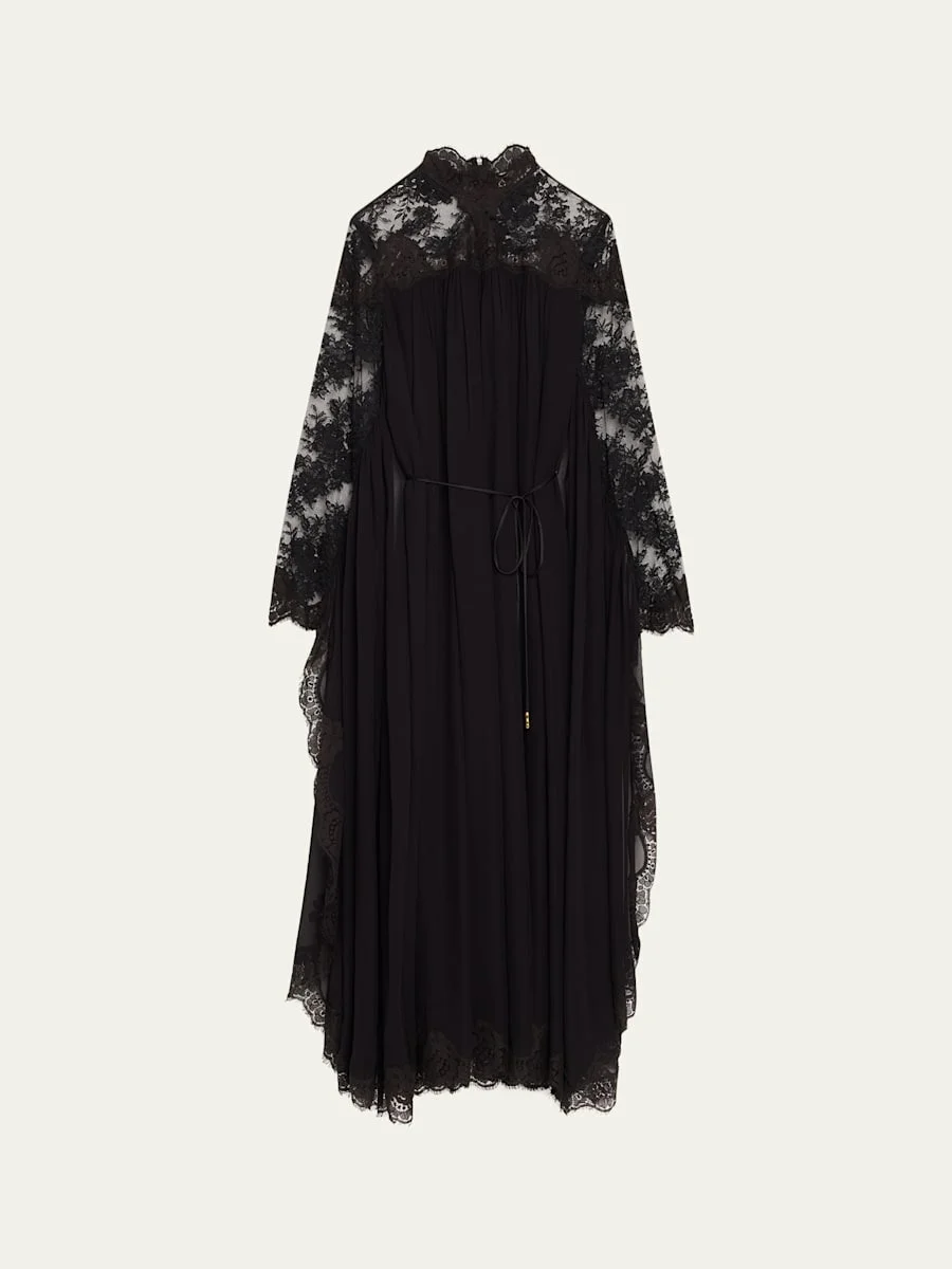 Zimmermann intricate lace maxi dress finished with a self-tie belt to accentuate the waist High neckline Long bat-wing sleeves Flowy silhouette Full length Center back zip Viscose Partially lined Dry clean Imported Size conversion: 0 = X-Small, 1 = Small, 2 = Medium, 3 = Large Online Inquiries: BGS21_T6YUW| Store Inquiries: #5048023