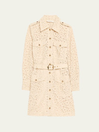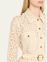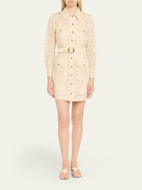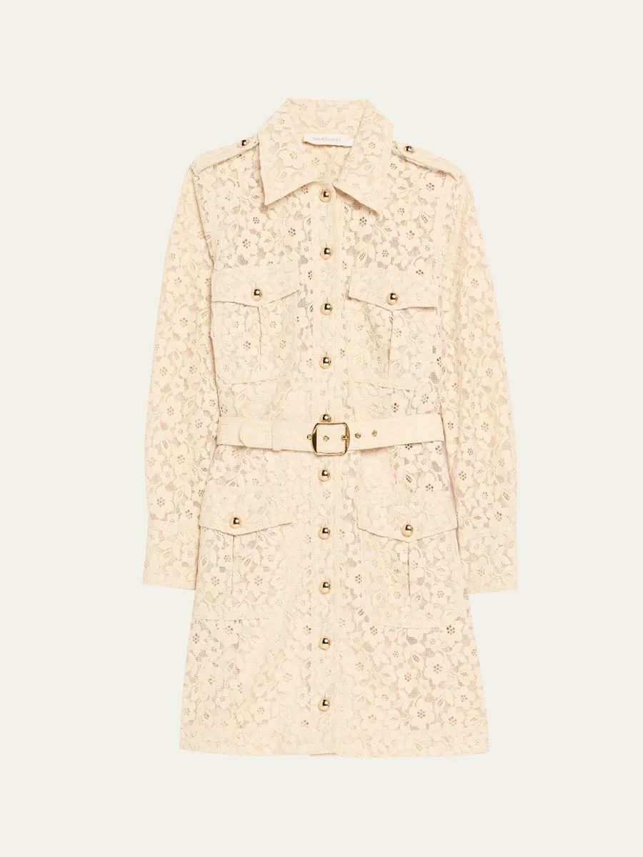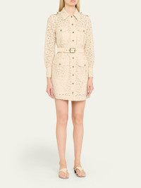 Zimmermann lace utility-inspired mini dress finished with gold-tone buttons Point collar; button-front Epaulets Long sleeves with button cuffs Dual chest pockets Belted waist Hip flap pockets Shirtdress silhouette Hem falls above the knee Polyester Unlined Dry clean Imported Size conversion: 0 = X-Small, 1 = Small, 2 = Medium, 3 = Large Online Inquiries: BGS21_T6YVA| Store Inquiries: #5048037