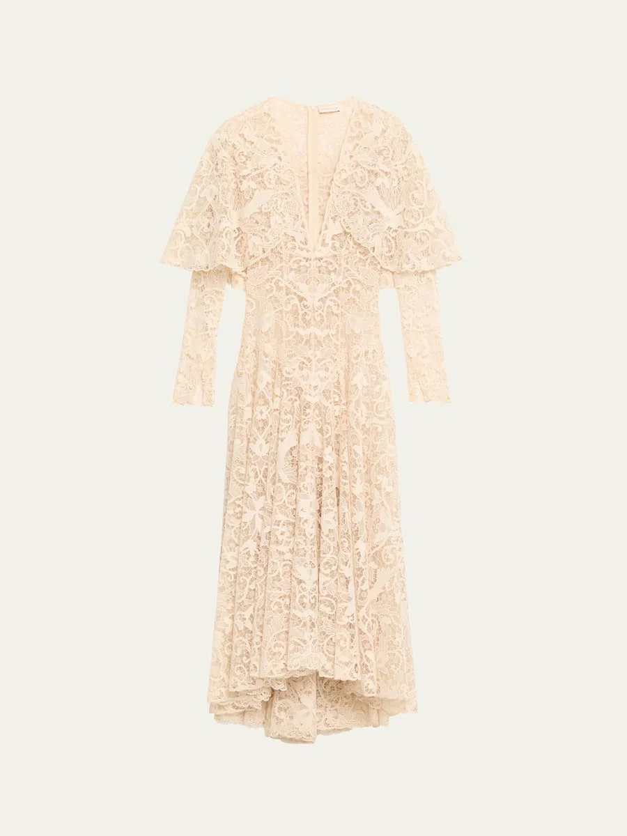 Zimmermann "Memento" intricate lace dress elevated with a plunging V neckline and corset-style bodice Long sleeves Fit-and-flare silhouette Hem falls below the knee Center back zip Polyester Unlined Dry clean Imported Size conversion: 0 = X-Small, 1 = Small, 2 = Medium, 3 = Large Online Inquiries: BGS21_T6YV0| Store Inquiries: #5048027