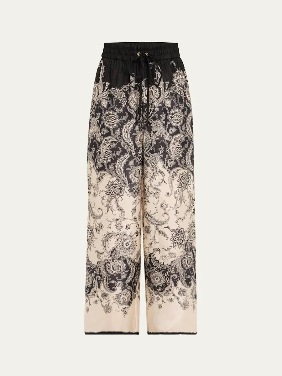 Zimmermann "Rhiannon" luxurious silk pants finished with an intricate print High rise Elastic drawstring waistband Side seam pockets Wide legs Full length Pull-on style Silk Dry clean Imported Size conversion: 0 = X-Small, 1 = Small, 2 = Medium, 3 = Large Online Inquiries: BGS21_T6LR4| Store Inquiries: #5008803