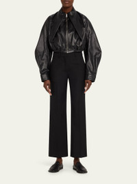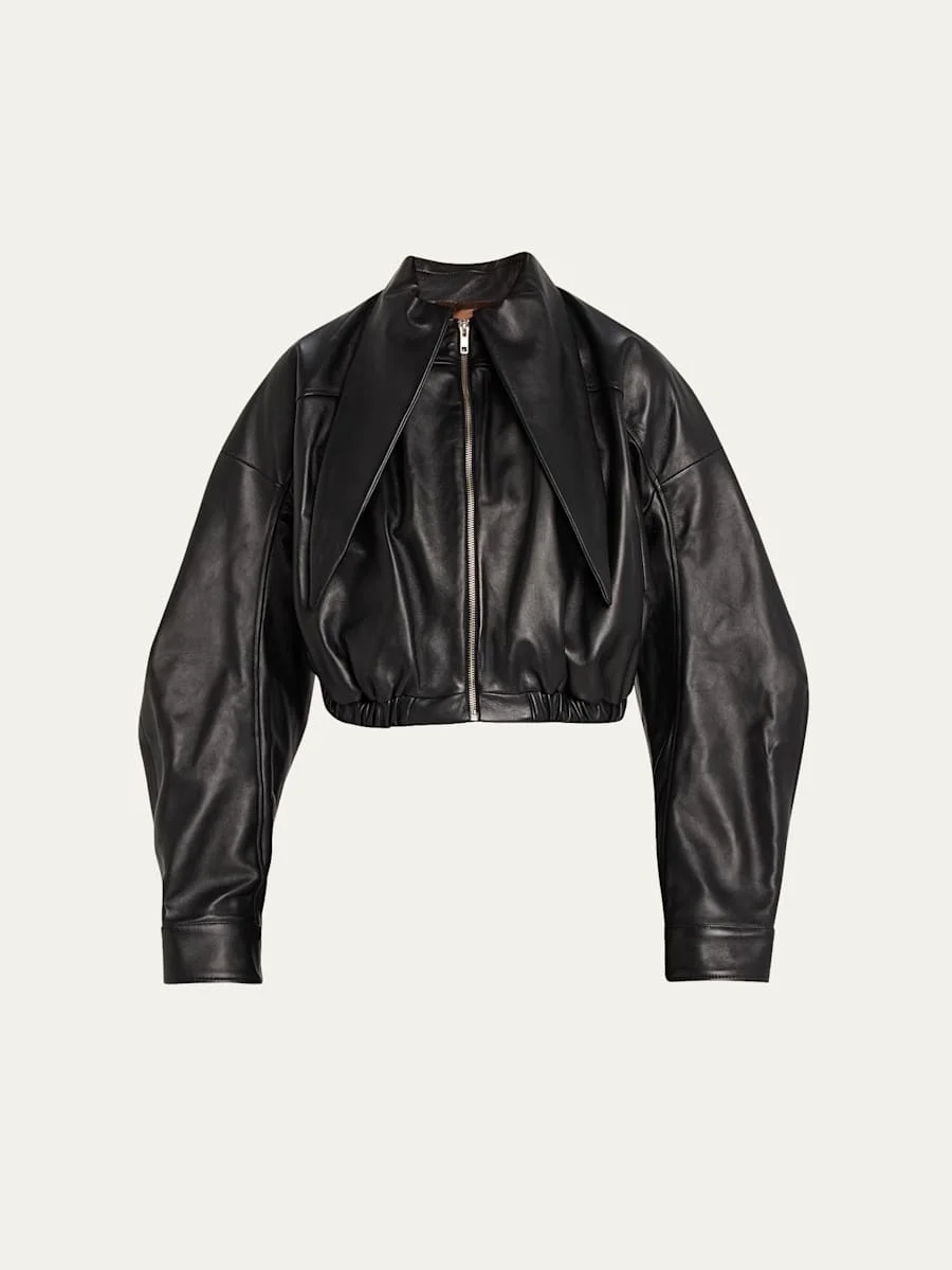 Exaggerated-Collar Leather Crop Bomber Jacket