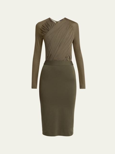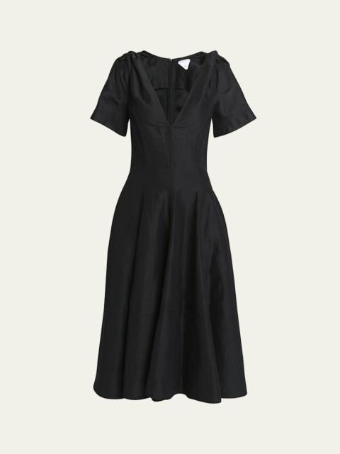 Polka-Dot Chiffon Short-Sleeve Midi Shirtdress