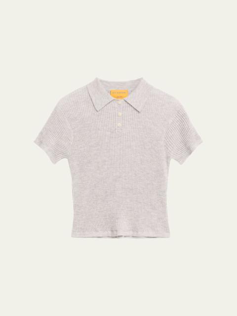 Cashmere Short-Sleeve Shrunken Polo Sweater