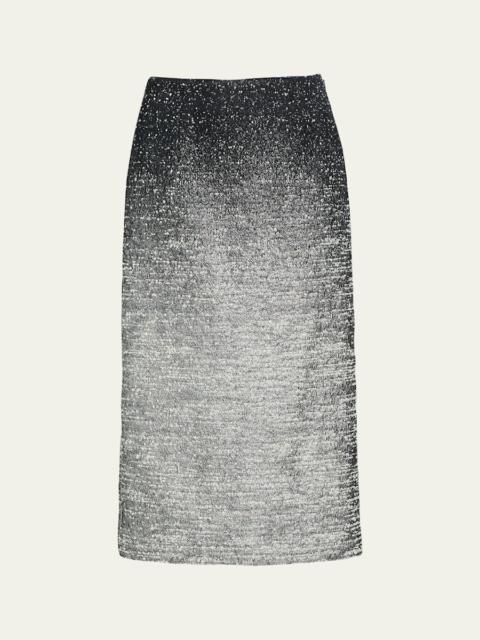 Ombre Metallic Boucle Jacquard Midi Pencil Skirt