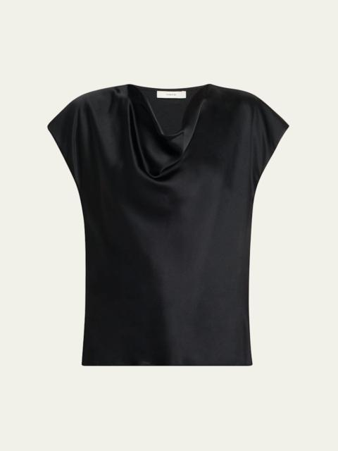 Cowl-Neck Cap-Sleeve Satin Blouse