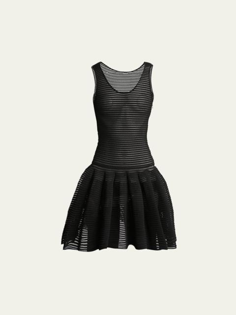 Metallic Openwork Cotton Rib Crewneck Sweater