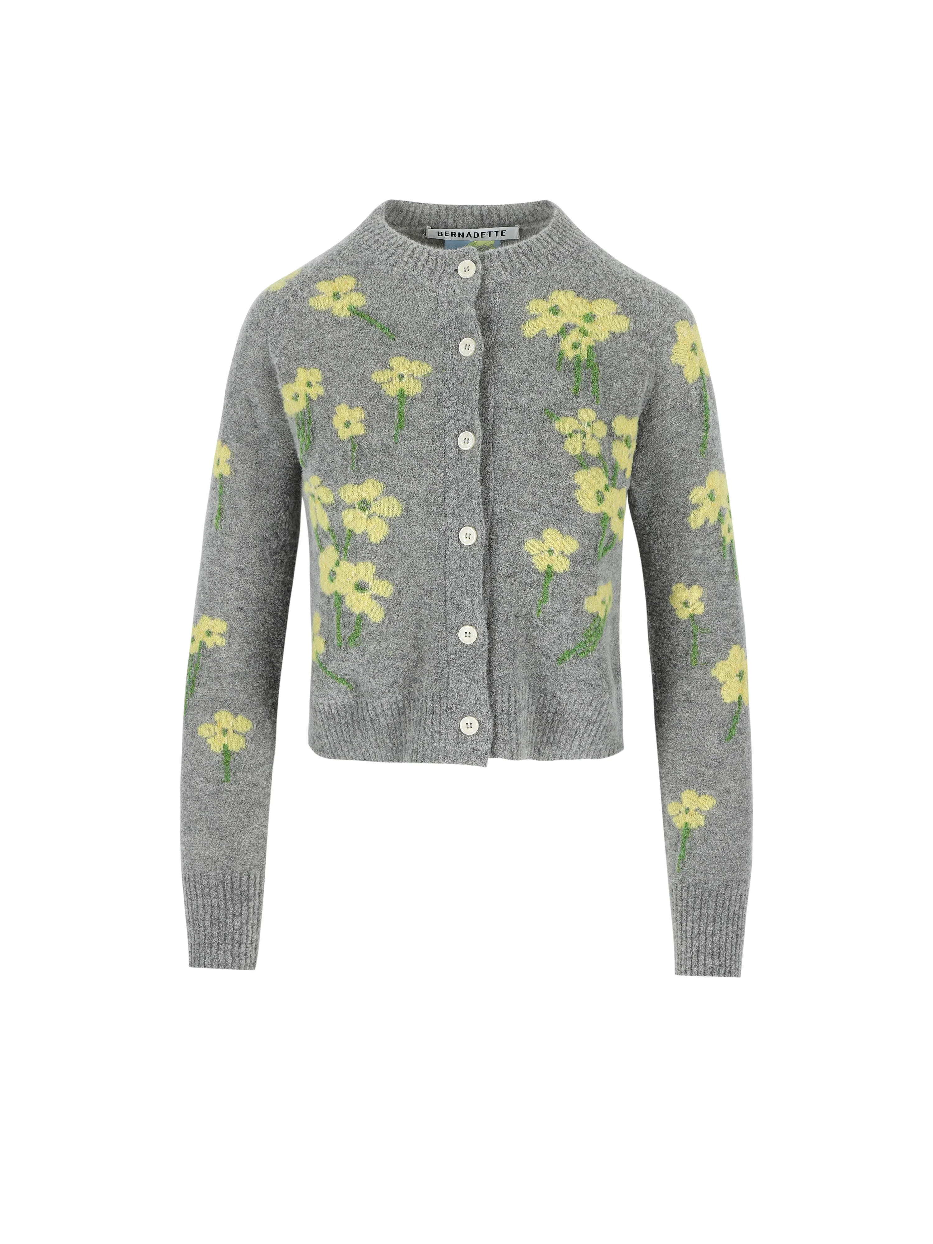 Introducing Cardigan Nona, a superfine grey melange wool knit adorned with our in-house Yellow Buttercups print. This is the perfect piece to combine with our embossed Skirt Caswell or drape it over Dress Vera in Yellow Seersucker for a full look. Product information Charlotte is 168cm / 5'6" and wears size XS. Cardigan Nona fits true to size. For size inquiries, e-mail sales@bernadetteantwerp.com. Yarns from Italy Made in Romania 70% SUPERFINE WO 30% PA