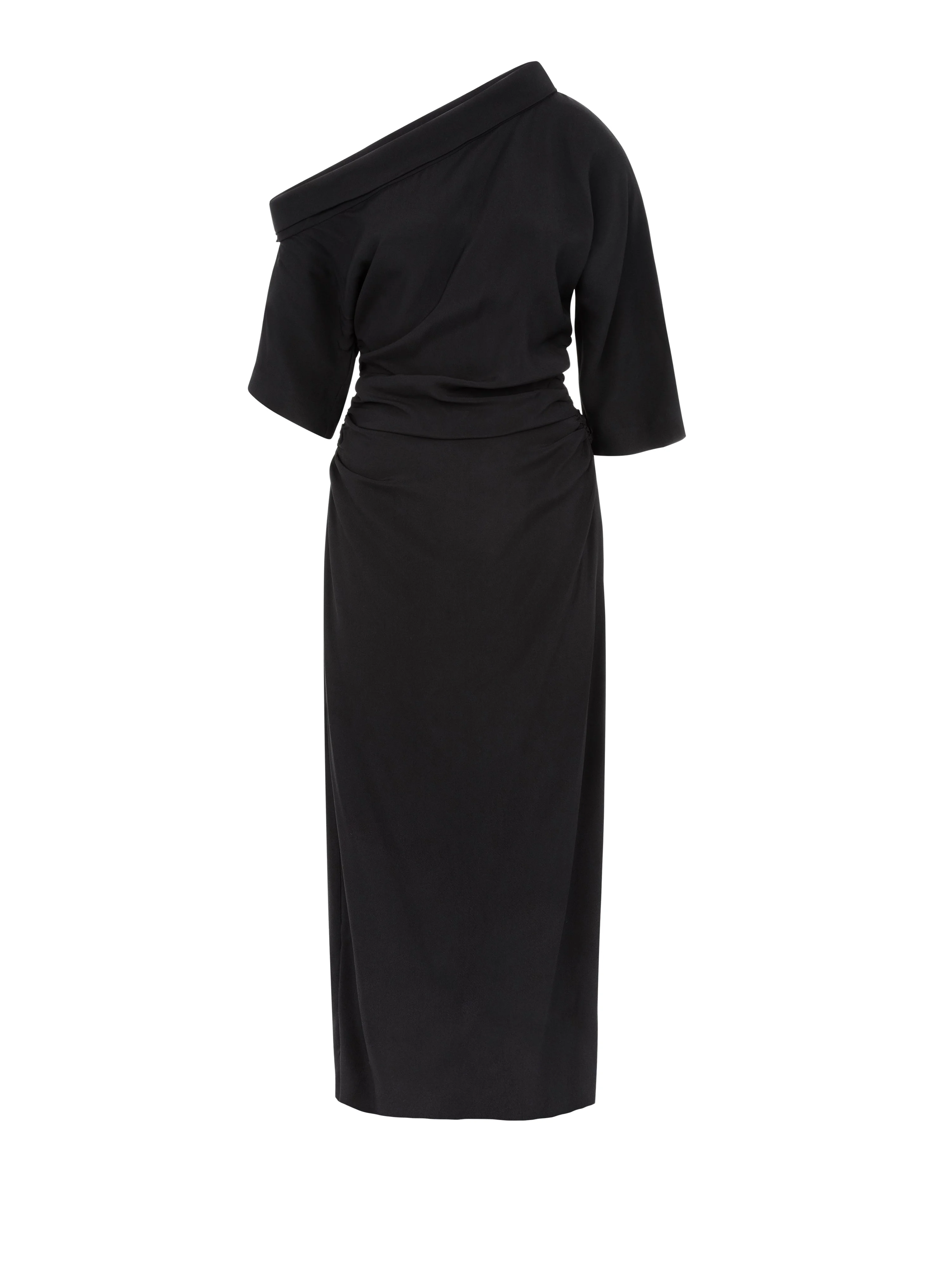 Introducing Dress Bowery—a refined reimagining of our iconic Dress Bowie, now in timeless black, soft silk. With its accentuated waist and graceful off-the-shoulder neckline, this cotton dress brings effortless elegance from day to night. Product information Charlotte is 168cm / 5'6" and wears size EU34. Dress Bowery fits true to size, though the hip is slightly narrow — we recommend sizing up if in between sizes. For size inquiries, e-mail sales@bernadetteantwerp.com. Fabrics from Italy Made in Romania 100% VI