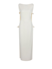 Introducing Dress Colette—a romantic statement in soft ivory crepe de chine. Cut to a sweeping length and sleeveless for a sleek silhouette, its sides are delicately tied together with signature BERNADETTE bows. Both graceful and playful, it’s a gown that feels effortlessly refined. Product information Puck is 174 cm / 5’8” and wears size EU34. Dress Colette is fully lined and fits true to size. We recommend taking your usual size. For size inquiries, e-mail sales@bernadetteantwerp.com. Fabrics from Japan Made in Romania 95% PL 5% PU