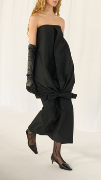 This new bustier dress Mary-Kate makes a bold statement, shaped with a defined silhouette and cinched right above the knees with a classic BERNADETTE bow. Flowing into a sweeping maxi length, it balances sculptural volume with a feminine edge—designed for cosy autumn moments. Product information Charlotte is 168cm / 5'6" and wears size EU34. Dress Mary-Kate fits true to size. Take your usual size. For size inquiries, e-mail sales@bernadetteantwerp.com. Fabrics from Italy Made in Romania 78% PL 20% PA 2% EA