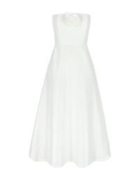 Reintroducing Dress Odette in ivory as part of BERNADETTE's newest bridal collection. Featuring a bustier neckline and an accentuated waist, this dress flows into a joyful ankle-length silhouette, completed with our signature Rose Brooch. Product information Charlotte is 168 cm / 5'6" and wears size EU34. Designed for a slim fit around the bust. Dress Odette fits true to size, however if you are in between sizes, we recommend taking a size down. For size inquiries, e-mail sales@bernadetteantwerp.com. Fabrics from Italy Made in Romania 78% PL 20% PA 2% EA