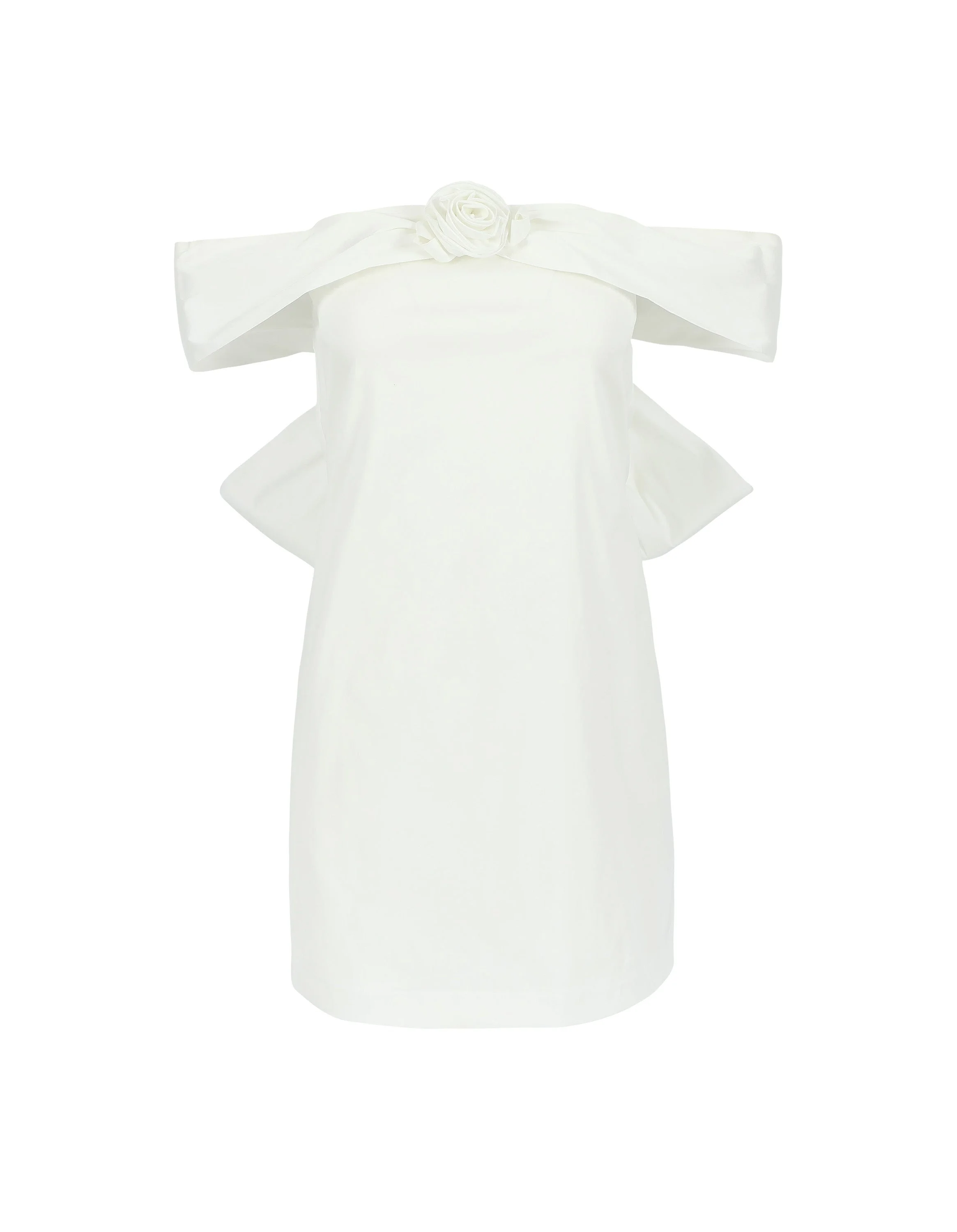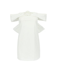 Dress Sacha is a strapless, short dress with a BERNADETTE twist. Cut out of light taffeta fabric, this dress features off-the-shoulder straps that elegantly rest on the upper part of your arm. Finished off with a rose in the middle of the neckline and our signature big bow in the back. Making everyone feel "Sasha Fierce" when walking into a room. Product information Charlotte is 168 cm / 5'6" and wears size FR34. Dress Sacha fits true to size. Fabrics from Italy Made in Romania 78% PL 20% PA 2% EA