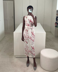 BERNADETTE proudly presents the Midi Dress Lucille. Cut from soft jersey, this versatile silhouette features a boatneck neckline and a separate belt to accentuate the waist. Adorned with our delicate Red Berry Branch print on Vanilla, it’s a timeless piece made to brighten every season. Product information Tumbush is 173 cm / 5’8” and wears size EU36. Midi Dress Lucille is cut for a streamlined, close to body fit. Take your usual size. For size inquiries, e-mail sales@bernadetteantwerp.com Fabrics from Italy Made in Romania 100% PL
