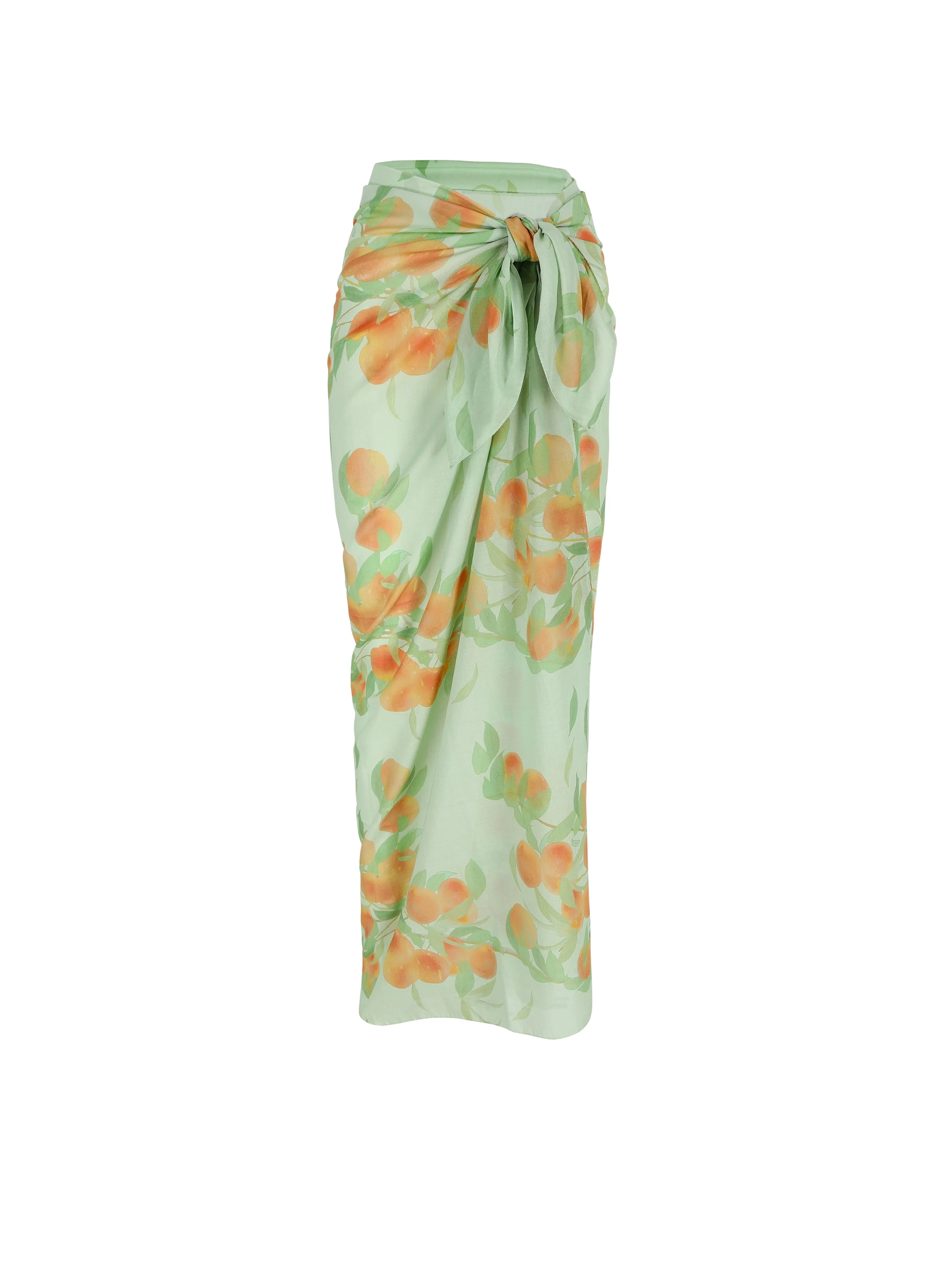 BERNADETTE's pareo is cut from a lightweight cotton, featuring a beautiful summery print of peach tree on sage green. The perfect addition to your beach wardrobe. Wear it as a hairband, tie it around your waist as a skirt, or lounge in it by the pool. Product information Pareo - Peachtree on Sage Green The pareo fits all. DIMENSIONS: 145 x 145 cm / 57" x 57" Fabrics from Italy Made in Italy 100% Cotton