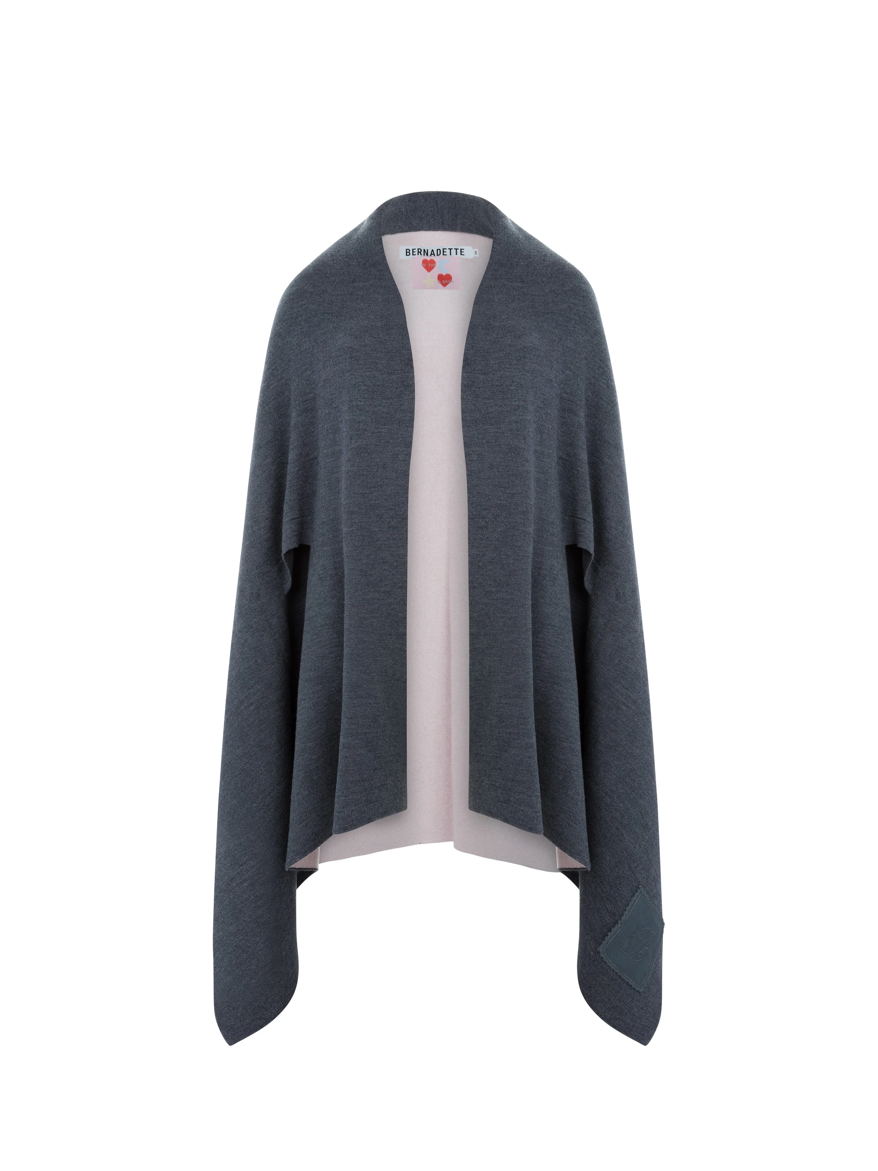 Meet Shawl Apolline — a luxurious double-face cashmere knit in grey melange and soft pink. The perfect layer to slip over your dress on a winter’s night, keeping you warm without losing elegance. Think festive evenings, candlelight, and Apolline draped softly as the party carries on. Product information Charlotte is 168 cm / 5'6" and wears size S. Measurements of size S: 80cm x 140 cm / 31.5" x 55.1". When choosing another size, measurements change proportionally. Shawl Apolline has a loose fit, we recommend ordering your regular size. For size inquiries, e-mail sales@bernadetteantwerp.com. Made in Belgium 81% WO 14% WS 5% LY