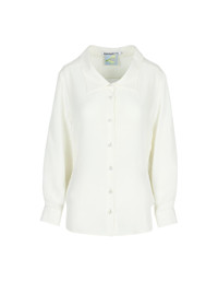 Shirt Guido is BERNADETTE's take on the classic white shirt. Crafted from luxurious 100% silk crepe de chine, this shirt features elegant white pearl buttons. Its drawstrings on the inside allow you to adjust the fit, accentuating your waist for a more tailored look. Pair it effortlessly with the Jolene Skirt in Blush Pink. Product information Charlotte is 168 cm / 5'6" and wears size 34. Lois is 177 cm / 5'10"" and wears size 36. Shirt Guido has a loose fit, we recommend ordering your regular size. For size inquiries, e-mail sales@bernadetteantwerp.com. Fabric from Italy Made in Romania 100% SE