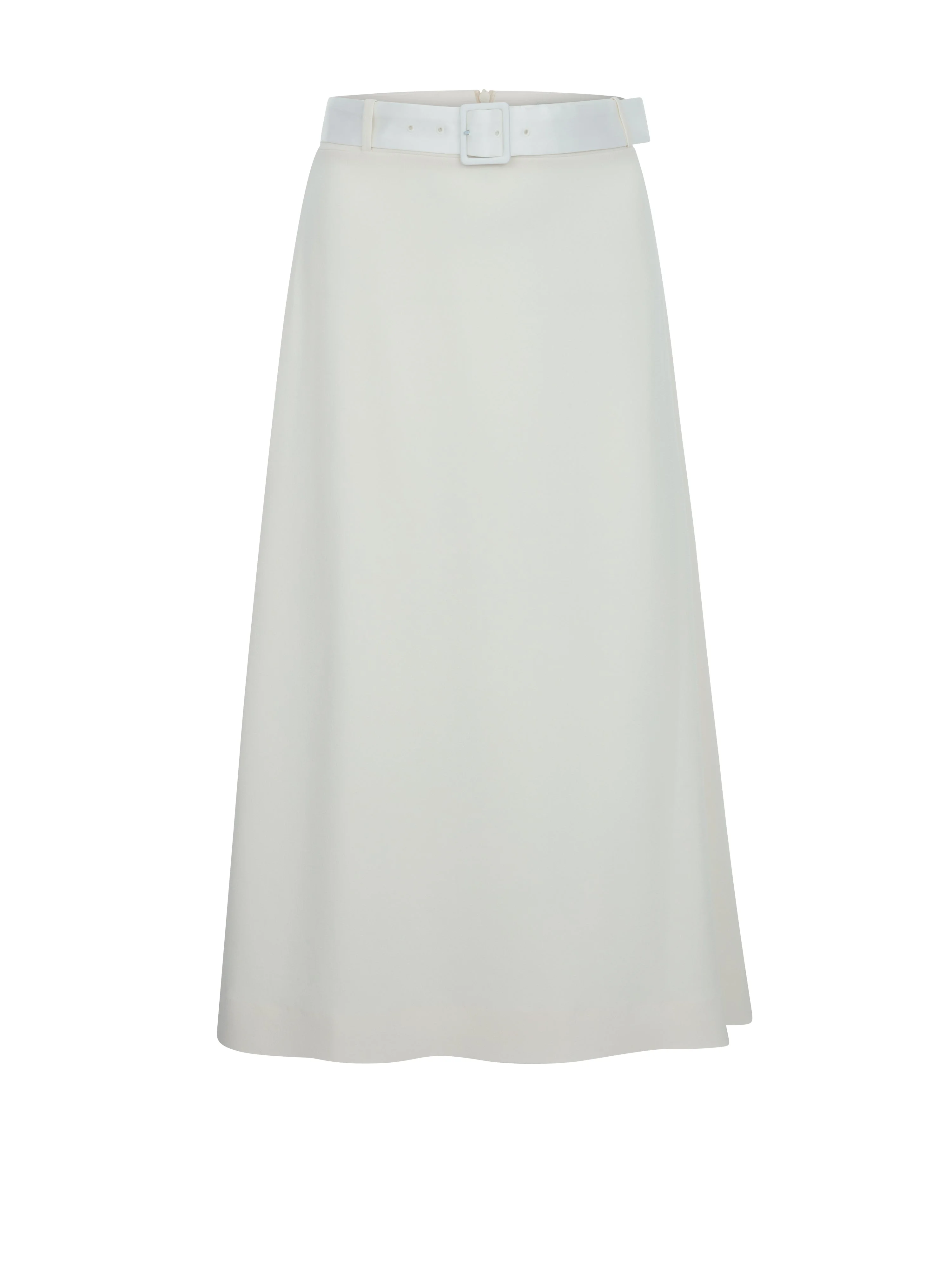 Meet Skirt Eva in ivory. This midi skirt balances volume at the hem with a cinched waist for a refined, modern shape. Finished with a matching belt, it transitions seamlessly from day to evening. Pair with Pull Solene for a cosy autumn look. Product information Aster is 176 cm / 5’9” and wears size EU34. Tumbush is 173 cm / 5’8” and wears size EU36. Skirt Eva is fully lined and fits true to size. For size inquiries, please e-mail sales@bernadetteantwerp.com Fabrics from Italy Made in Portugal SKIRT: 77% ACE 23% PL / BELT: 85% PL 15% SE : LINING: 100% VI