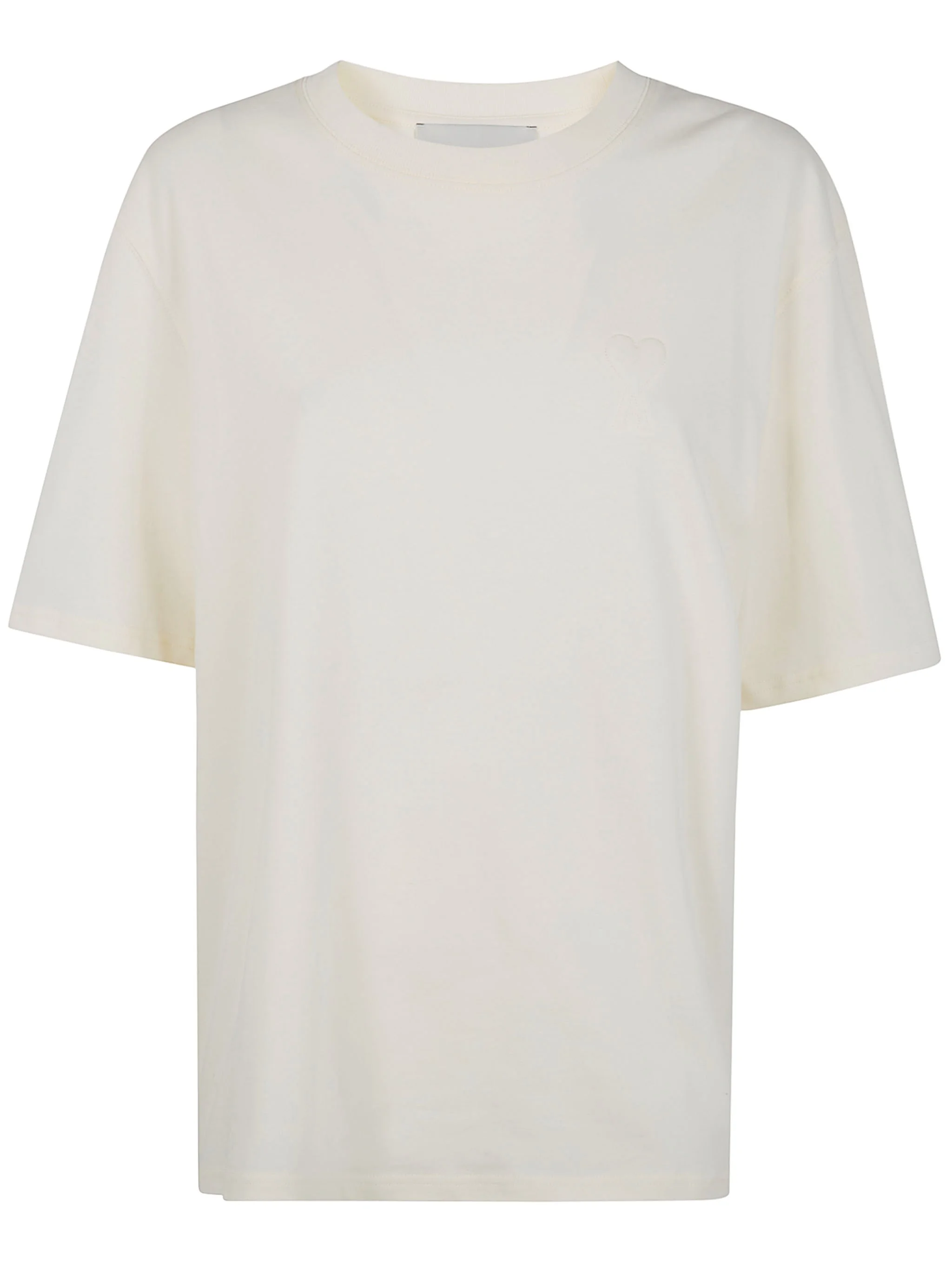 WHITE COTTON AMI DE COEUR EMBOSSED T-SHIRT
