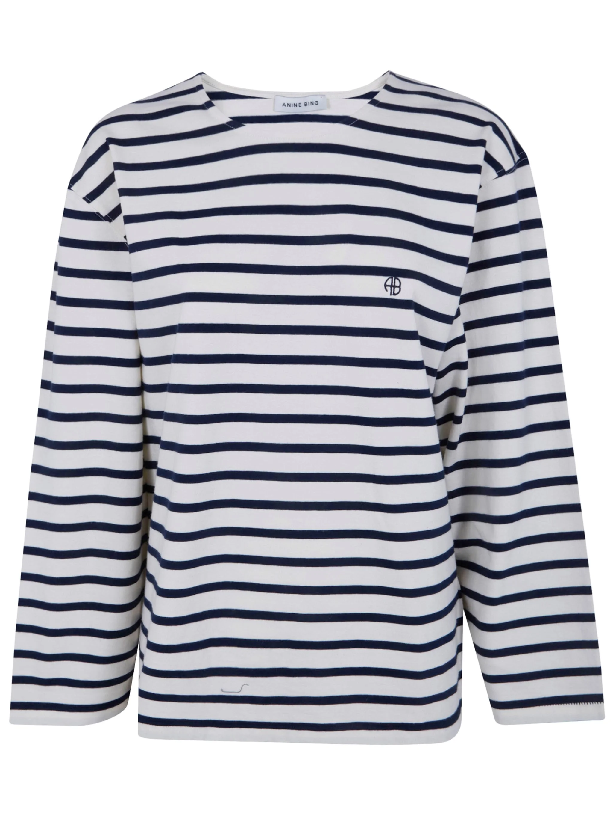 "NEWTON" TEE ANINE BING e una t-shirt di alta qualita, perfetta per chi ama uno stile raffinato e contemporaneo. Realizzata in morbido cotone, questa maglietta blu e un must-have per la tua collezione di primavera estate. Prodotta in Turchia, offre un comfort senza pari grazie alla sua vestibilita ideale. Caratterizzata da un design elegante con strisce distintive e dettagli unici, e perfetta per occasioni casual o eventi informali. Scegli di indossarla con jeans per un look chic o abbinala a pantaloni eleganti per un tocco di classe. Realizzata con attenzione alla sostenibilita, rappresenta l'impegno del brand per un futuro piu responsabile.. MadeIn: Turkey TR Product code: A.08.11995.STR15 NAVY STRIPE