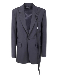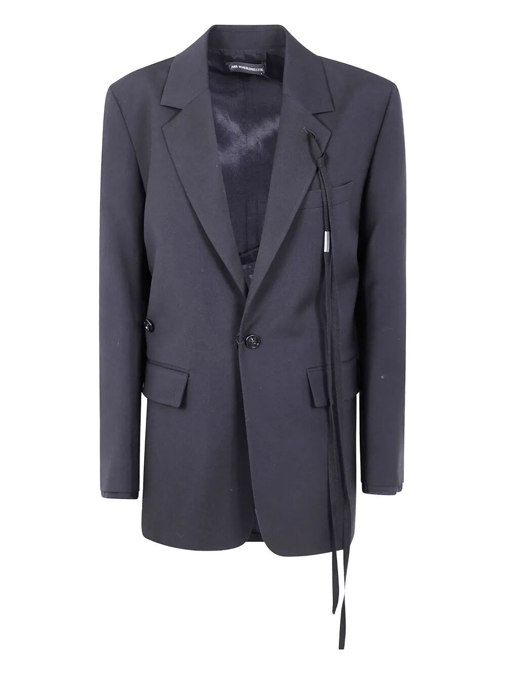 Introducing the "ELIN" TWISTED CLOUSURE TAILORED JACKET WITH RAW EDGE COTTON DETAIL by ANN DEMEULEMEESTER, a stunning addition to your outerwear collection. Crafted from premium cotton, this black jacket embodies elegance while providing a touch of avant-garde style. Made in Italy, it showcases meticulous craftsmanship with a raw edge that enhances its unique design. Ideal for layering over tailored trousers or a chic dress, this jacket is perfect for both professional settings and evening outings. Embrace its versatility and make a statement wherever you go, knowing you're wearing a piece of art. Product code: B0013157.FA646 099 BLACK