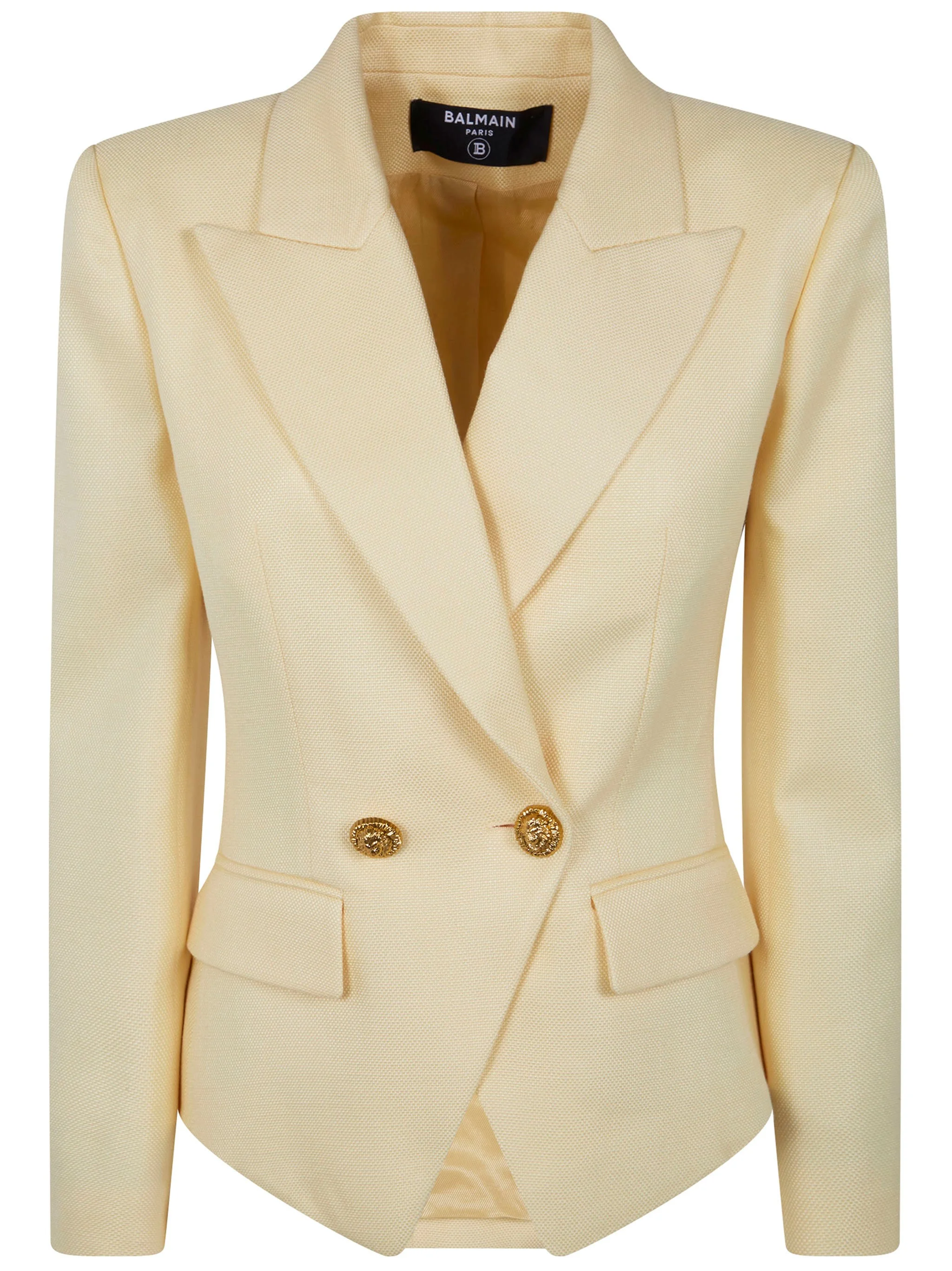 Introducing the '2 BOTTONS "NATTE" JACKET' from the prestigious brand BALMAIN, a stunning addition to your wardrobe. Crafted from 100% viscose, this exquisite yellow jacket is designed in France, showcasing exceptional quality and artisanal craftsmanship. With its tailored silhouette and two-button closure, it radiates elegance and sophistication. Perfect for both casual outings and formal events, this versatile piece transitions seamlessly from day to night. Embrace the luxury of this limited edition jacket, which not only elevates your style but also reflects a commitment to sustainable fashion.. MadeIn: France FR Product code: GF1SI650VI58 1GD LIGHT YELLOW