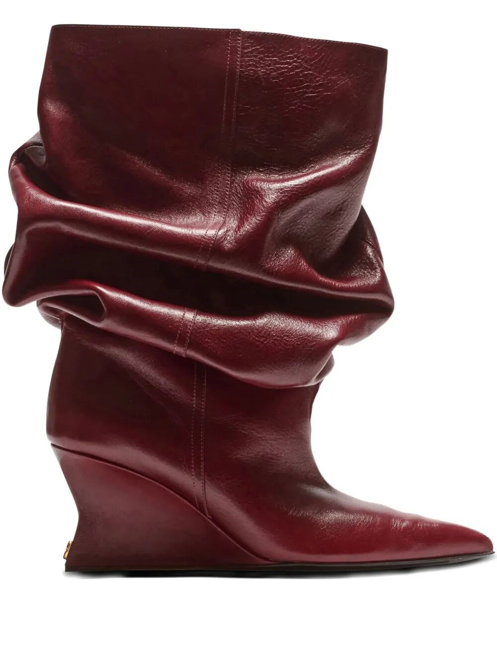 Introducing the ANKLE BOOT WEDGE-TEXTURED LEATHER from BALMAIN, an exquisite addition to your footwear collection. Crafted from 100% premium calf leather, this stunning brown boot is made in France, reflecting the pinnacle of luxury craftsmanship. With its unique wedge design and textured finish, it offers both style and comfort, making it perfect for both day and evening wear. Ideal for elegant occasions or a sophisticated night out, this boot seamlessly complements your wardrobe. Embrace exclusivity and confidence with this standout piece, designed for those who appreciate the art of fine fashion. Product code: FN0TA181LSDX 3AR AUBERGINE